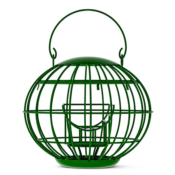 Our coated steel, caged peanut butter guardian feeder protects your jar of flutter butter from marauding squirrels, parakeets and even stops all but the most determined large birds such as starlings.