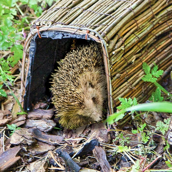 The Hedgehog Retreat is constructed using a rust-proof steel frame covered by a waterproof membrane with an attractive rattan finish. It features an extended predator baffle to prevent intrusion by unwanted animals, giving hedgehogs a safe place during warm summer days or cooler hibernating months.