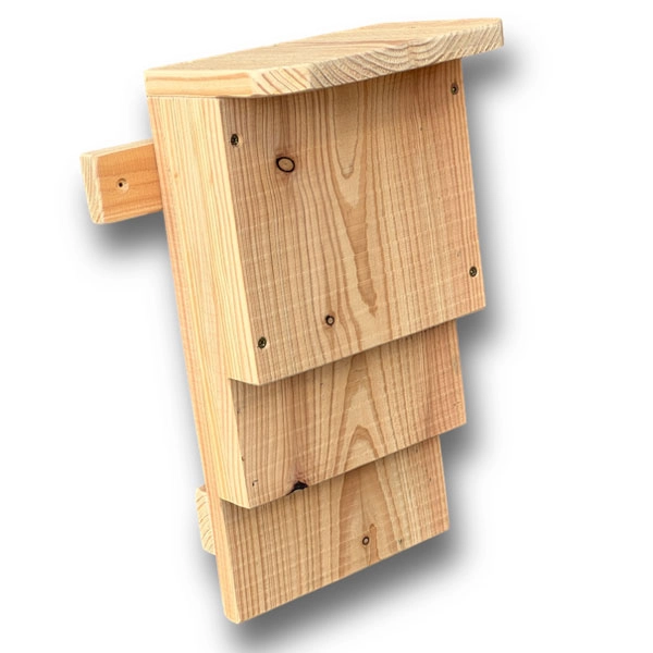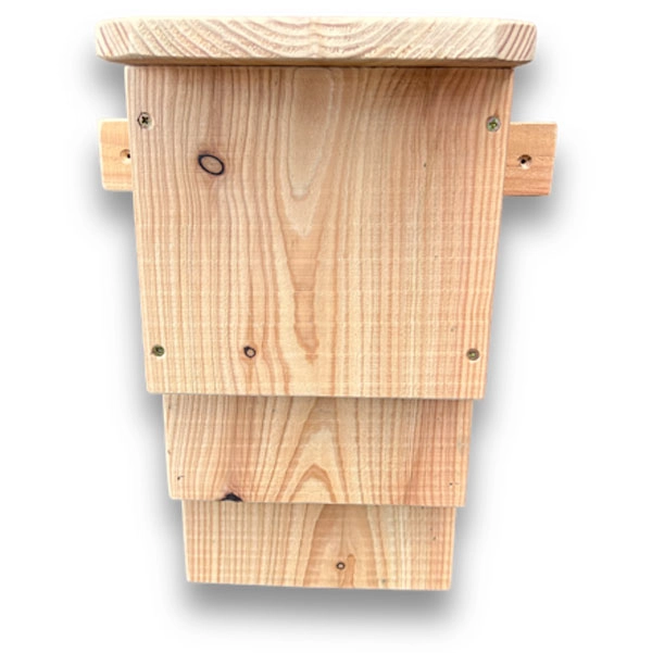 Based on a design by the Kent Bat Group, this rustic, double chamber bat box contains three nesting areas. Two within the front chambers and a third cavity crawl space at the rear of the box created once it is mounted.