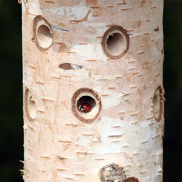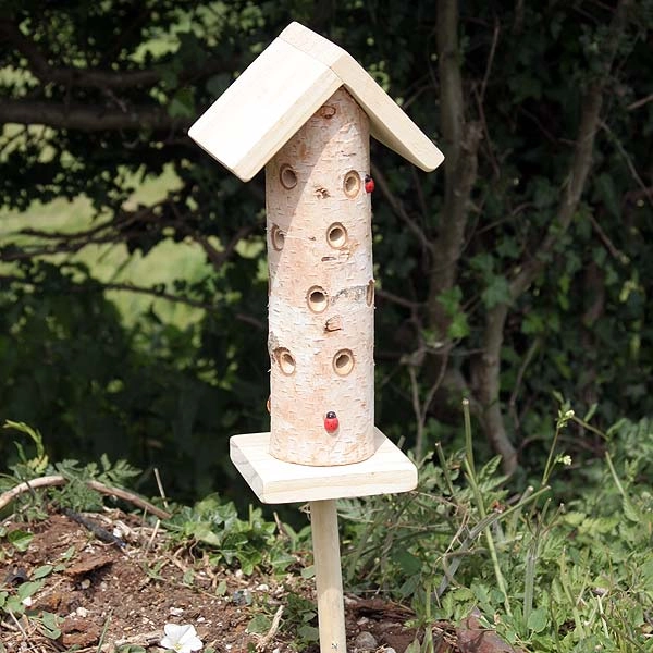 Our Ladybird/Beneficial Insect Tower with Pole is constructed from FSC natural silver birch wood and made for ladybirds and other beneficial insects. It is designed with a central chamber filled with natural material to provide insulation during the cooler months.