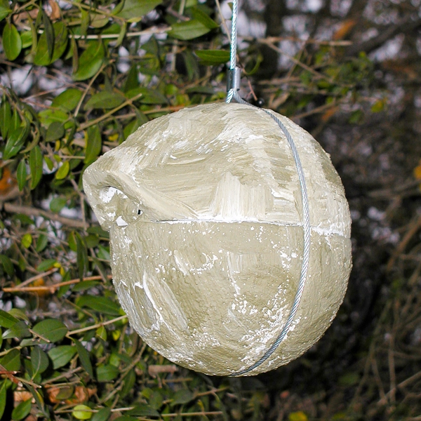The nest box, which comprises two shells, ideally should be cleaned during the autumn or winter months. To do this, remove the cable from which it is suspended. The upper shell can be easily lifted off the lower one. When cleaning has been completed simply place the two halves together again and secure using the cable.With it`s speckled green exterior the “Ivy” colour blends well with the surrounding undergrowth, thereby providing a well-hidden nest site.